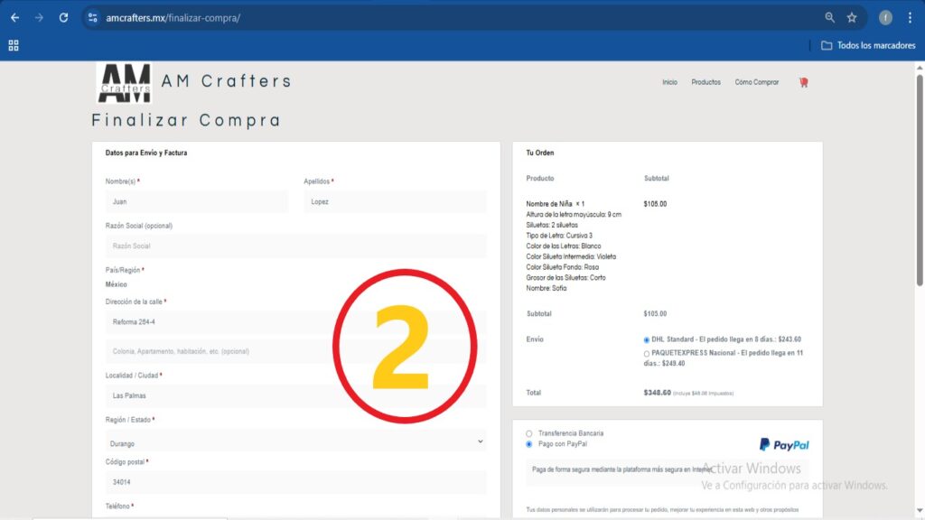 Una vez que hayas personalizado tu producto, agrégalo al carrito de compras y procede al pago. Completa la información necesaria para que puedas obtener las opciones de entrega que las empresas de paquetería te ofrecen para llevar el producto hasta la puerta de tu casa. El tiempo mostrado incluye los 5 días hábiles que necesitamos para la elaboración de tu producto. Los datos personales proporcionados son exclusivamente para completar tu pedido.