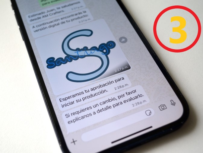 Nuestro equipo de diseño creará un versión digital de tu producto personalizado y te lo enviaremos por los medios de contacto proporcionados al momento del pago para que lo revises y apruebes antes de su elaboración. En este punto aún estamos a tiempo para hacer algún ajuste que sea necesario.