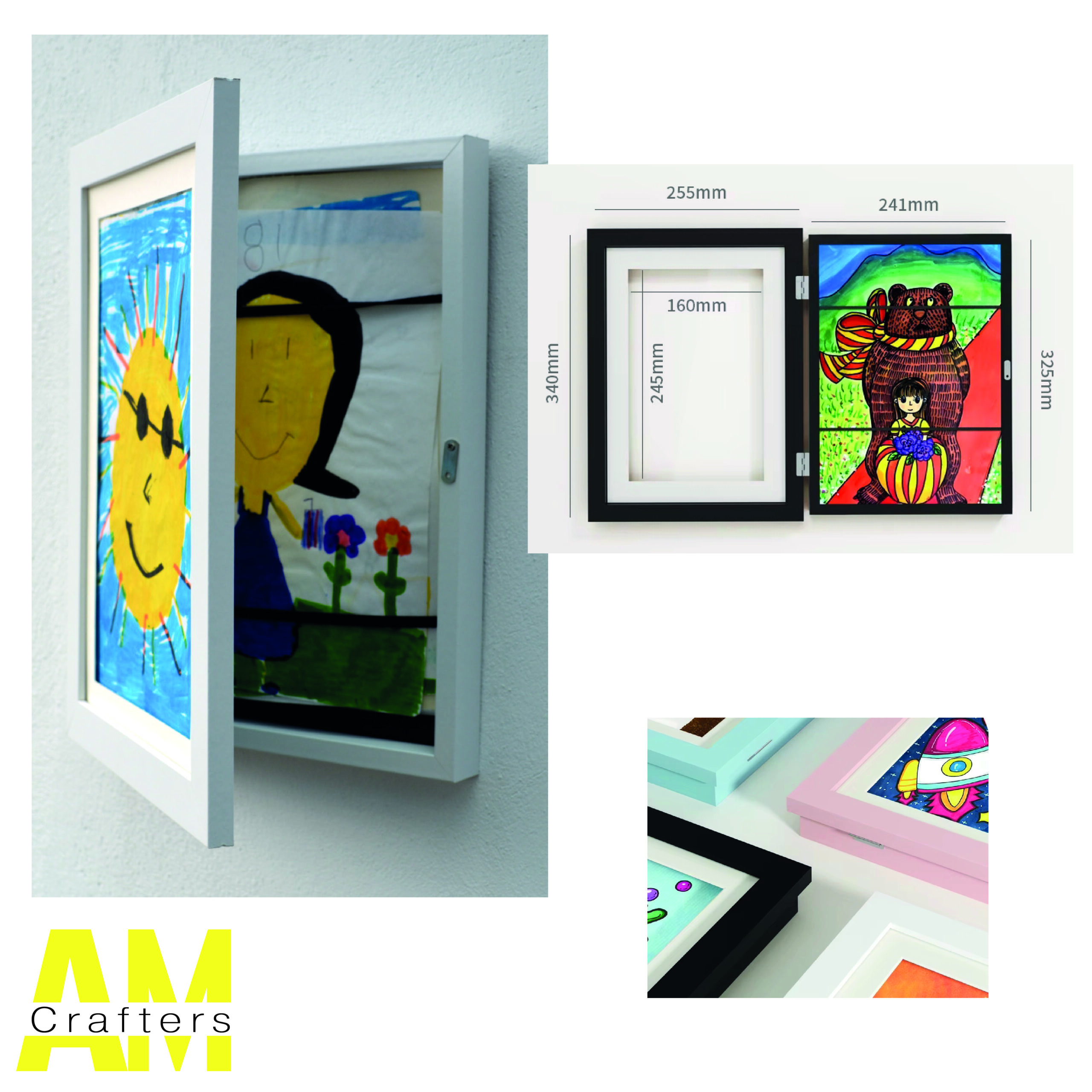 Este ingenioso cuadro combina la funcionalidad de un marco de exhibición con la practicidad de un espacio de almacenamiento. Permite mostrar la obra de arte más reciente de tu hijo mientras guarda cuidadosamente sus creaciones anteriores en un compartimento interior.